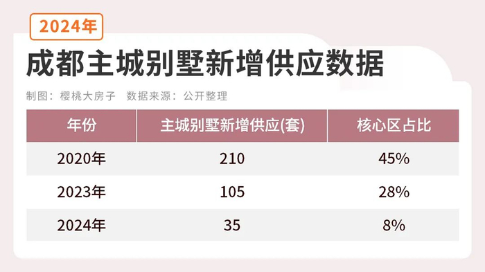 前文数据可见,2024年主城别墅新增供应仅35套,较2018年(420套)暴跌92.7%。