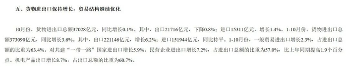 再把目光转向外贸,10月份进出口总额只是微增0.1%,虽然总量平淡,但依旧有结构性变化。