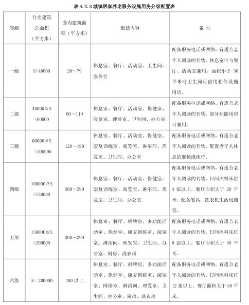 某地区养老服务用房面积规定要求