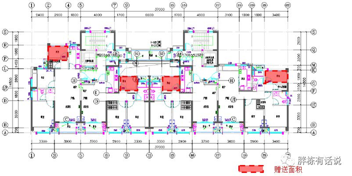 此项目标准层建筑面积338㎡,赠送面积为15㎡,赠送率为5%,导致含钢量及含砼量增加5%,土建造价约增加17元/㎡。