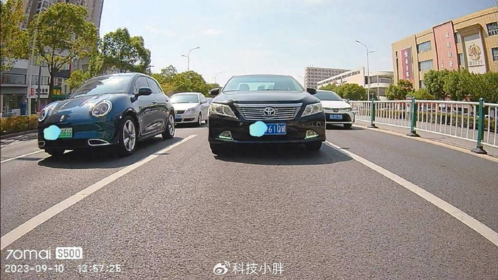 前后138°的广角镜头可以覆盖三车道的视野,不仅能看到前后的车辆,还能清晰显示左右两侧的车辆。后方的车牌也能够清晰识别,不仅限于同车道,相邻车道的车牌也显示得非常清楚。倒车时,连接倒车灯的信号线可自动显示倒车影像,方便安全。