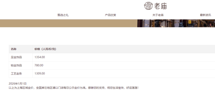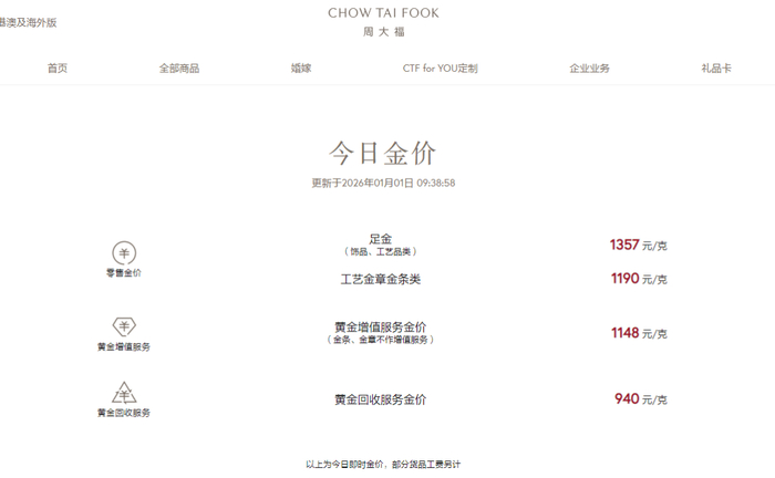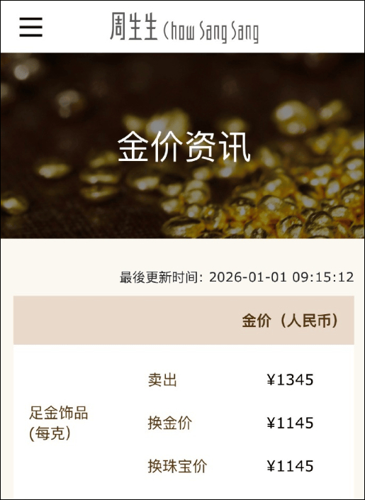 部分品牌在1月1日的足金克价,比2025年12月30日大跌之后的价格还要低。