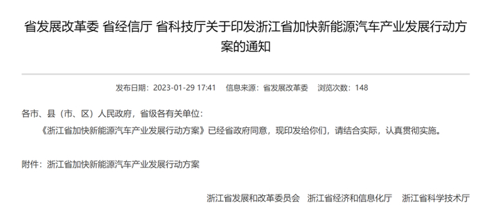 易车讯 近日,浙江省印发《加快新能源汽车产业发展行动方案》,为扩大新能源汽车消费。鼓励各地结合实际发放新能源汽车消费券,鼓励有条件的地市出台促进新能源汽车消费政策、开展新能源汽车下乡活动。