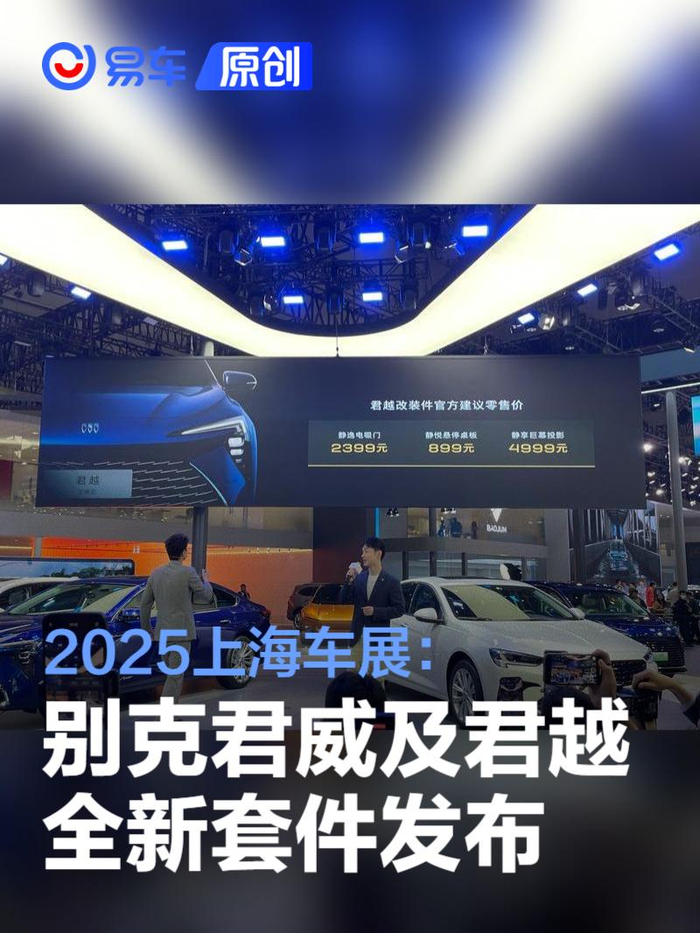易车讯 4月26日,别克品牌将于上海车展举办“别克君威及君越全新套件发布会”,升级加装全新套件的君越与君威亮相展台,君威改装件官方建议零售价公布:GS改装件6799元、流光底盘899元、掠光悬浮轮毂盖1199元;君越改装件官方建议零售价,静逸电吸门2399元、静悦悬停桌板899元、静享巨幕投影4999元;同时官方宣布,显示权益价最低3.3折起。