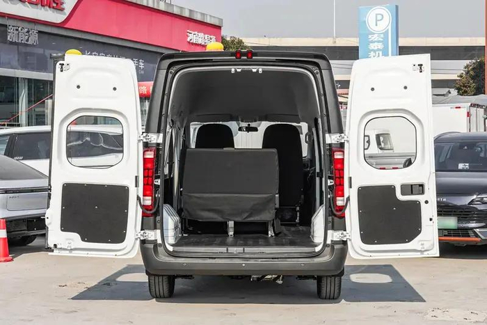 长安凯程V919车名中的V代表凯旋胜利,9代表最大单数字,展现极致空间与效率。长安凯程V919车长5495mm,货箱长3380mm,拥有57.4%的得舱率。货箱尺寸方面,新车货台高度547mm,中门宽度1050mm,尾门支持开度为270度,可满足欧洲托盘标准使用。
