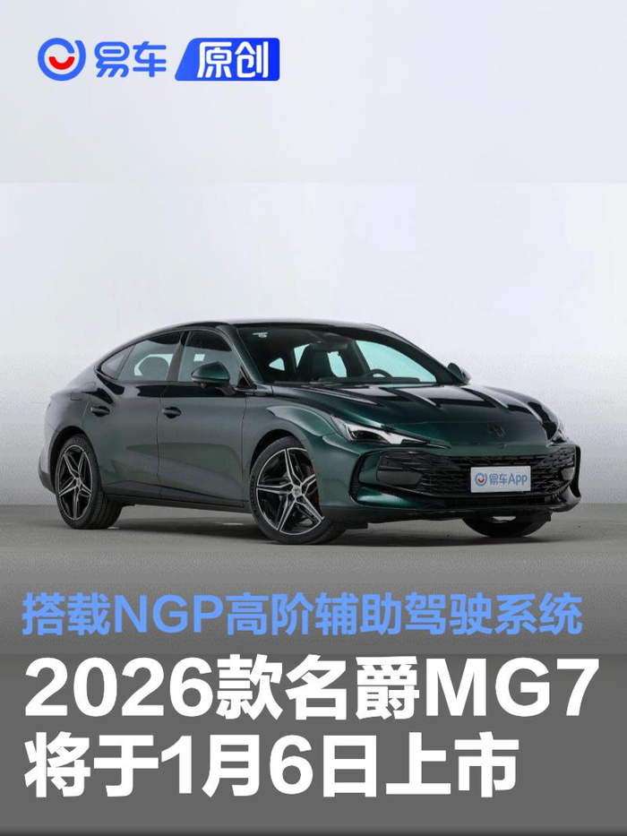 易车讯 我们从官方获悉,2026款名爵MG7将于2026年1月6日上市。新车将搭载NGP高阶辅助驾驶系统,并配备了AI语音大模型,智能化显著提升。动力方面,新车搭载2.0T+9AT组合。