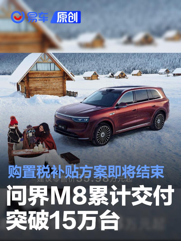 易车讯 12月29日,鸿蒙智行宣布问界M8上市8个月累计交付突破15万辆,问鼎四十万级车型销冠。问界M8定位大型SUV,提供增程和纯电车型可选。售价区间为35.98-44.98万元。值得一提的是,问界M8购置税补贴将于本月底结束,12月31日24:00前完成大定锁单,如因非用户原因车辆未及时到店交付,导致开票和车辆交付实际发生在2026年,则用户可享受跨年购置税补贴方案,至高15000元。