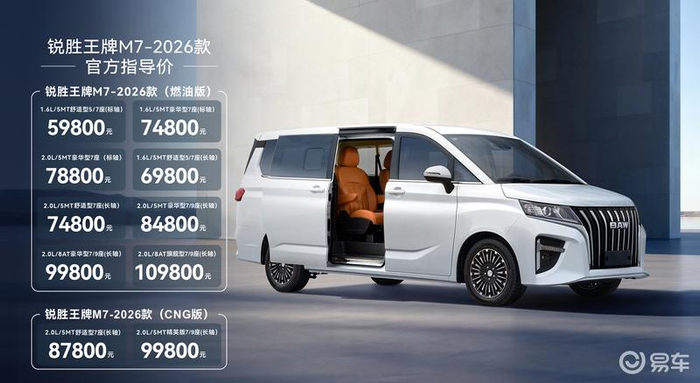 易车讯 日前,2026款锐胜王牌M7正式上市,售价区间5.98-10.98万元。本次上市的车型覆盖燃油、CNG两种动力,与此前上市的纯电版相结合,带给消费者更多选择空间。
