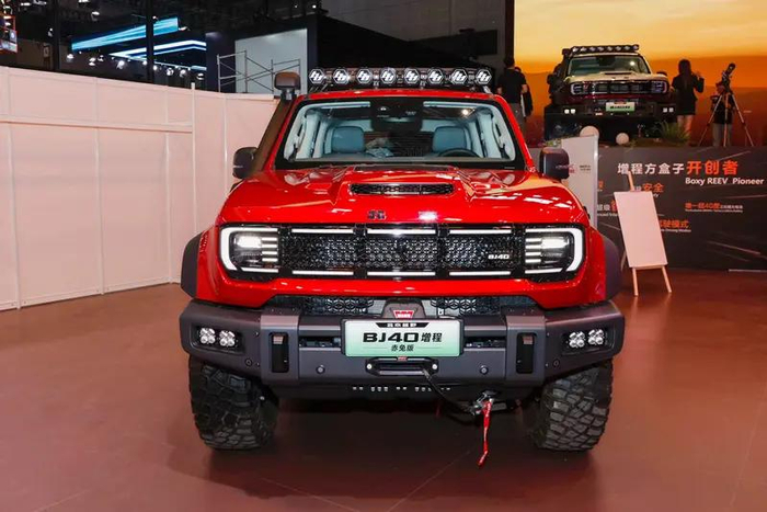 外观方面,新车延续了家族化的设计,整体显得时尚感十足。新车前杠后疑似绞盘,是越野必不可少的利器,并加装顶灯行车时可以提供有力的照明保障。越野配置上,目前在售款车型采用串联电四驱,并且带有前后桥的机械差速器锁,和中央的能量中锁,也可以看做是新能源时代下的“三把锁”。