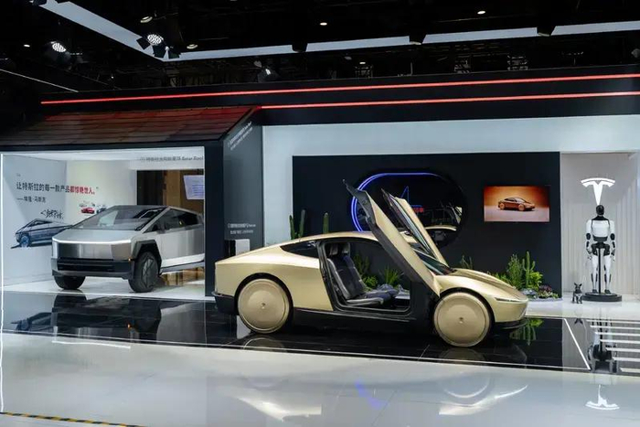 内饰方面,马斯克表示该车不提供方向盘和油门、刹车踏板,将使用特斯拉完全体的FSD自动驾驶。此外,该车型的座椅采用了一体式的概念设计,座椅靠背与坐垫呈现出分段式的造型,中间还配有可收起的中央扶手以及中置的屏幕显示器。