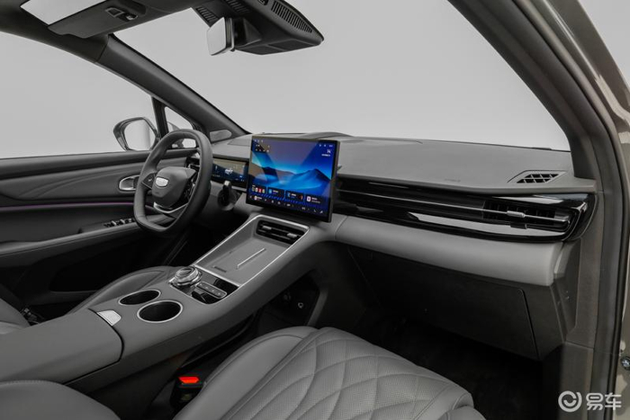 内饰方面,座舱采用环抱式设计,有霞光棕、星夜灰等内饰配色可供选择,前排座椅采用大沙发级舒适设计,配备女王副驾配备电动腿托,最大可调至80°。座舱搭载Flyme Auto智能座舱系统 ,支持多协议手机无缝互联、全场景双区语音交互,搭配16扬声器 Flyme Sound无界之声,更有15英寸超清W-HUD。