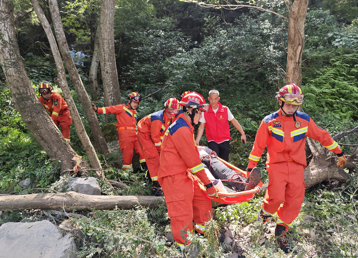 8月9日11时,一名男子在桂林市阳朔县杨堤乡全家洲村山上徒步时不慎摔伤,无法自行下山。桂林市消防救援支队接警后迅速出动,经过数小时紧张救援,成功将伤者安全转移至山下并送医治疗。