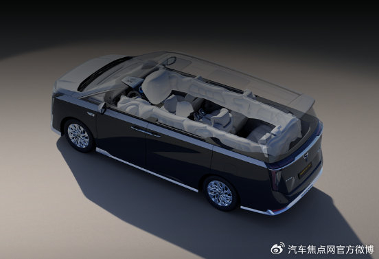 被动安全方面,采用“八纵十九横”车体结构,高强度钢占比高达85.6%,打造坚实的笼式铠甲车体。针对MPV第三排安全痛点,首创1.5米后风窗气囊,与两侧6.4米超长侧气帘,形成360°环抱式气囊矩阵,构筑刚柔并济的全向安全堡垒。
