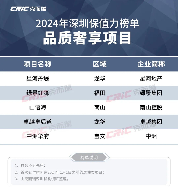 克而瑞深圳机构在系统化的测评指标体系及测评模型的基础上筛选调研,最后选出优秀的保值力项目。