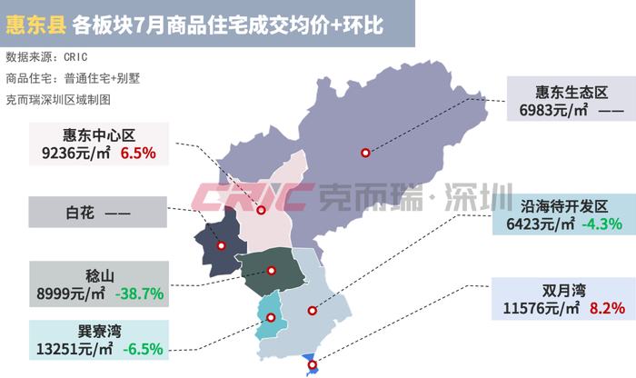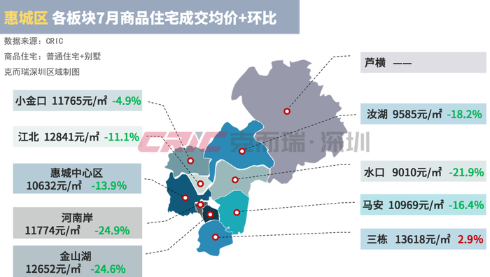 惠州网签均价最低的板块为霞涌板块,均价约为4741元/㎡,环比下降51.6%。