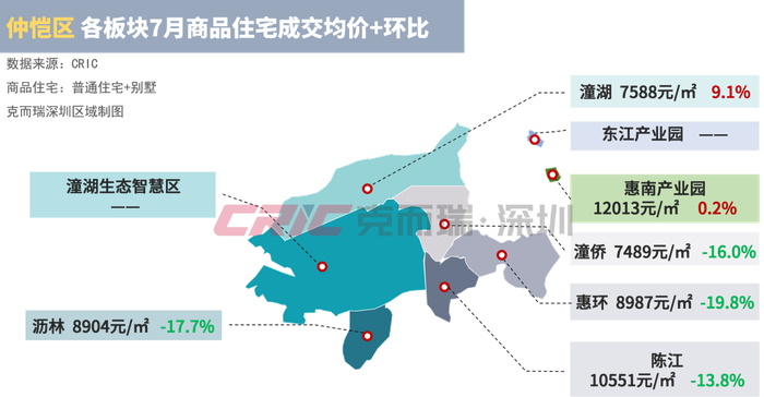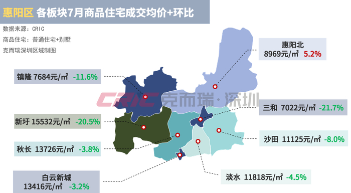 惠州网签均价最高的板块为新圩板块,均价约为15532元/㎡,环比持续下降20.5%;
