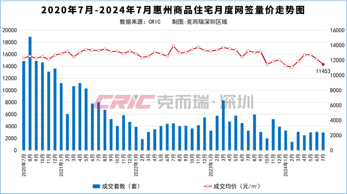 根据CRIC市场监测数据显示,7月惠州商品住宅供应量约20万㎡,总供应1902套,环比上涨91%。成交方面,网签总面积约32万㎡,共2998套房源,环比下降3.5%,同比下降9.3%。从区县方面看,大亚湾在7月的表现较为显眼,供求量都是最多。