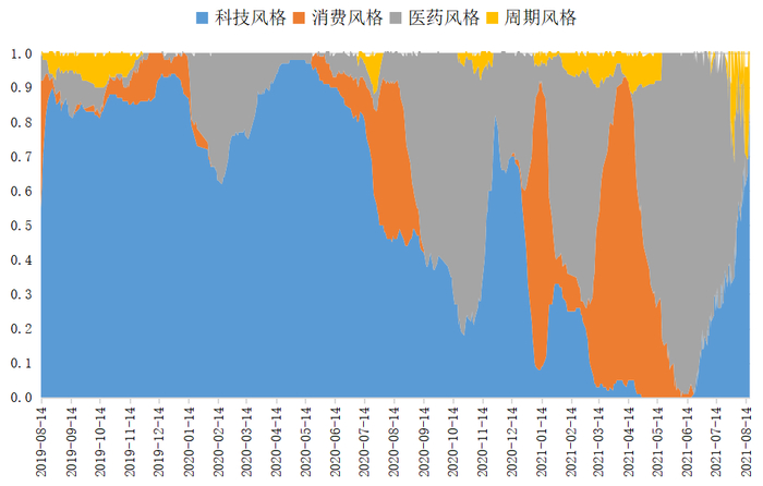 从净值归因来看,2020年以前,刘格菘极度重仓科技风格;但在2020年以后,他的持仓偏好的确发生了一定变化,消费行业、医药行业均有所涉猎。尤其是在2021年6月前后,其净值明显地被归因为医药风格。