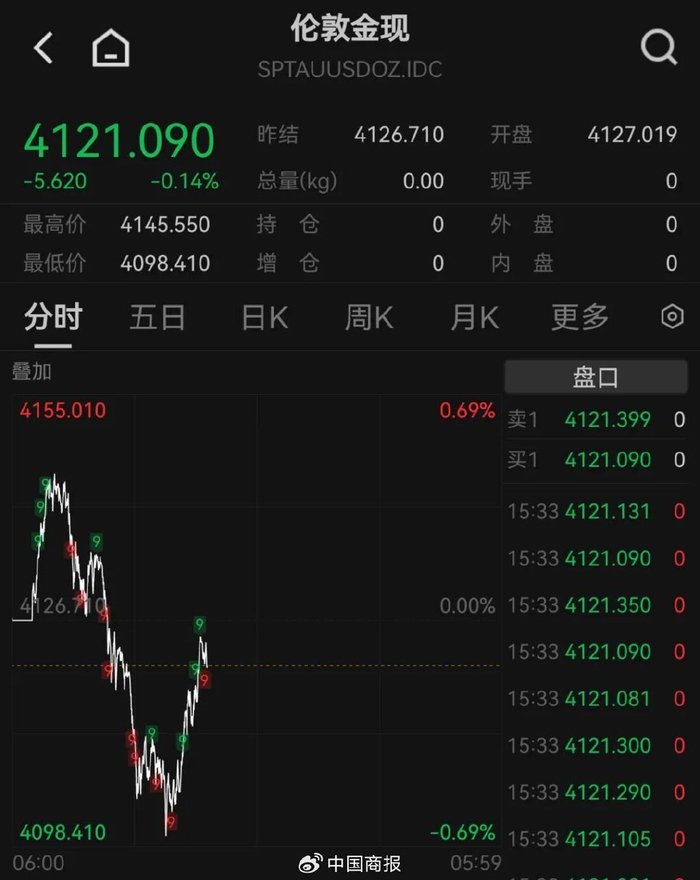 11月12日,现货黄金波动加剧,盘中一度跌破4100美元/盎司,随后逐步回升。截至发稿报4121.09美元/盎司,跌幅0.14%。