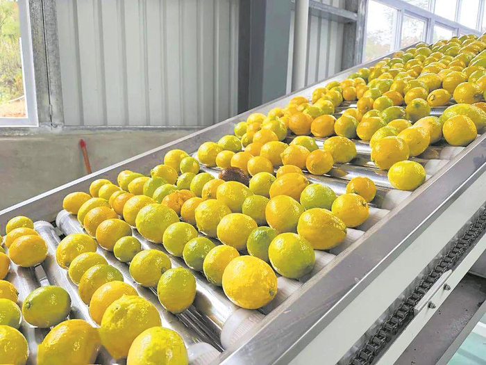 进入新的一年,位于简阳市雷家镇黑水寺村的农副产品出口总部基地里,自动化生产线高效运转,工人加班加点,气氛十分火热。一颗颗刚从树上采摘下来的新鲜柠檬在这里接受喷淋清洗,再“坐”上自动化分拣轨道,通过激光分选并进行分级认证后,打包、装箱,即将漂洋过海到俄罗斯、东南亚等地。
