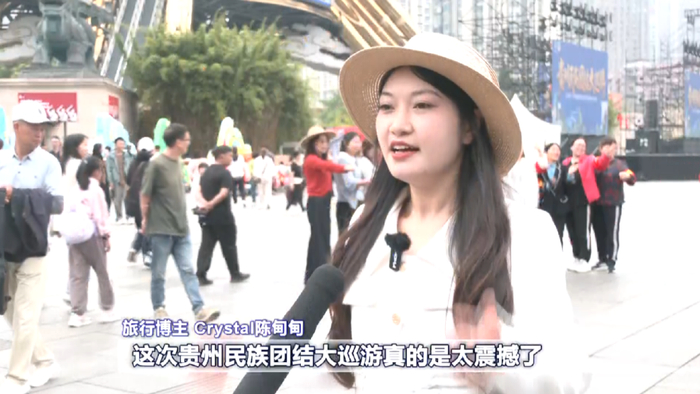 旅行博主 Crystal陈甸甸:这次贵州民族团结大巡游真的是太震撼了,给我印象最深的就是巡游里面丰富多彩的非遗项目,像是苗族银冠、侗族大歌、遵义的矮人舞等,给人印象非常深刻,视觉冲击力也是非常强烈的,我本身也是旅行短视频创作者,这次我准备以“多彩贵州 民族风情”为主题,将贵州的美以短视频的方式分享出去。