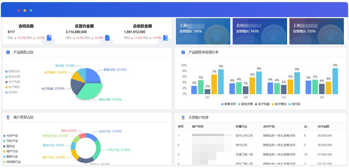 ·业务增长分析:销售合同能够按产品线、区域、团队等各维度进行穿透式分析,识别业务增长点与管理短板。