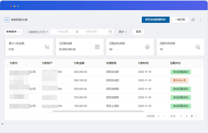 票、款、合同自动匹配,履约数据联查