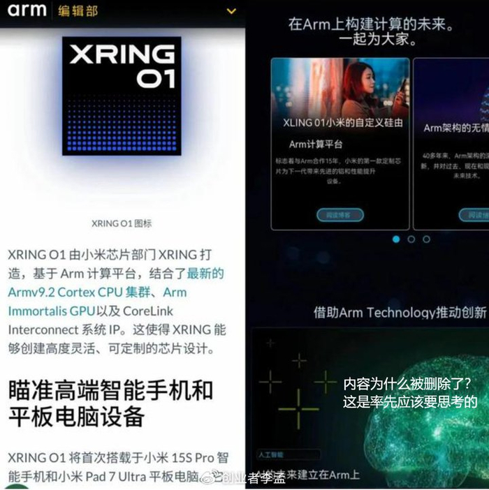 如何看待ARM官网上显示小米玄戒为arm首款定制芯片?