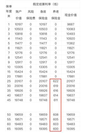 以保底利率来计算,等开始领养老金的时候,每年能领的钱会越来越少。