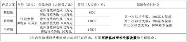 3) 被保险人在保险期内第三次胚胎移植失败,在保险期限结束后累计可获得48000元。
