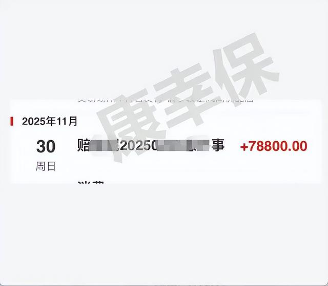 2025年11月30号,张女士成功收到中国人保78800元试管保险理赔款。