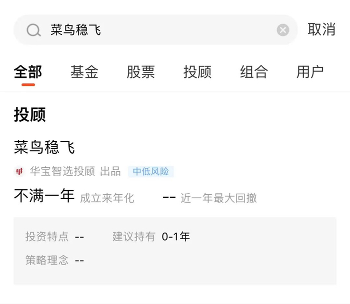 “菜鸟稳飞”组合也已经在天天基金上线,打开“天天基金”APP,搜索“菜鸟稳飞”,即可买入/定投。