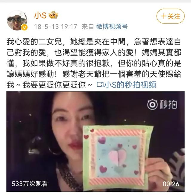 这让老育想起了小s的二女儿许韶恩,小s曾经在节目中就直言自己很爱大女儿,生下二女儿后,内心并没有什么波澜,也因此长期冷落二女儿。