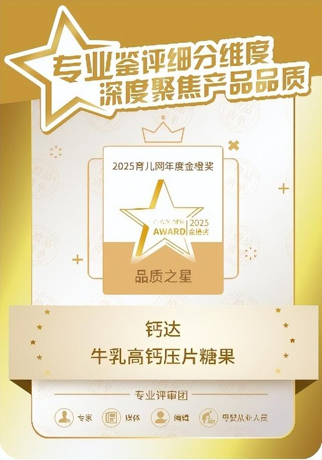 “金橙奖”由育儿网每年组织评选,特邀专业医生专家、资深母婴媒体人以及国家高级育婴师组成权威评审团,围绕产品成分、配方科学性、使用安全与人群适配等细分维度进行深度鉴评。该奖项与完全基于真实妈妈反馈的“妈妈口碑之选”相辅相成,共同构成业内知名的母婴用品品质清单。钙达品牌此次获奖,标志着其产品在专业品质与消费者信赖层面均获得了高度认可。