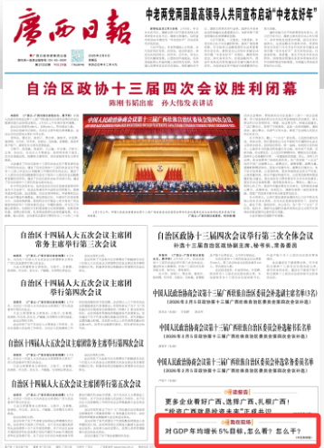 “这是一个科学合理的目标。”在广西社科院社会学研究所所长姚华委员看来,这个目标充分考虑了广西经济发展的阶段特征、现实基础与中长期潜力,精准平衡了经济发展的“稳”与“进”、“质”与“量”,既体现务实基调,也蕴含进取决心。