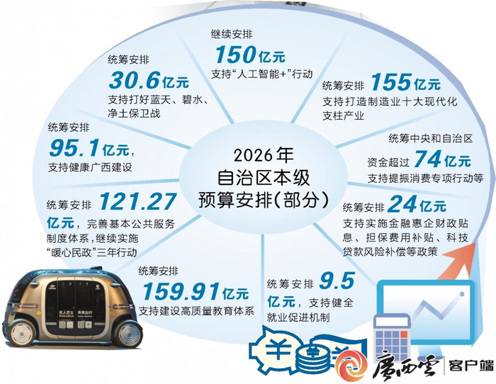 2026年自治区本级预算安排(部分)对此,南宁市财政局局长吴厦代表认为,这个增长目标既体现了我区对经济发展规律和全区实际情况的深刻把握,也为全区上下指明了奋斗方向。