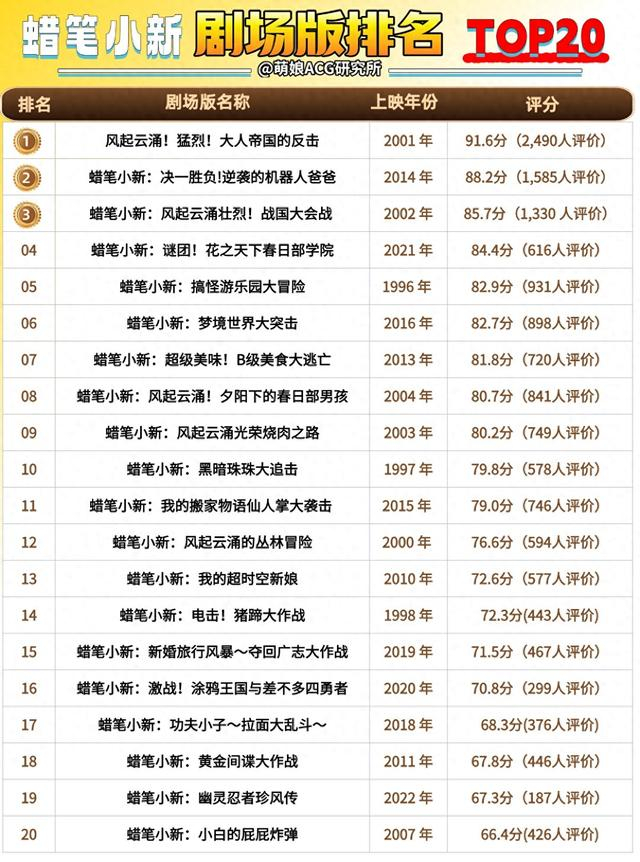 《蜡笔小新剧场版》每年春季上映。与一般动漫系列的都有不同的主题。那么哪一部剧场版最好看呢?日本网站就针对最好看的蜡笔小新剧场版进行投稿,总共有18,416票得出剧场版排名。接下来我们可以参考一下日本网友的评价。