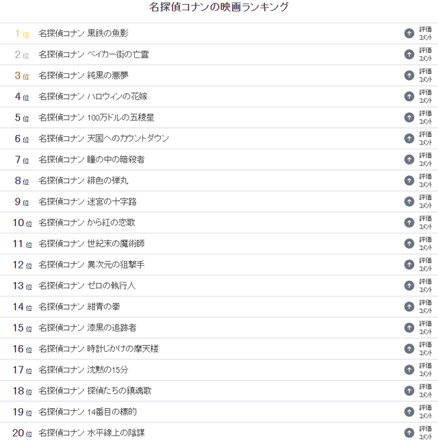 《名侦探柯南》剧场版人气排行榜TOP20(由日本网友票选)