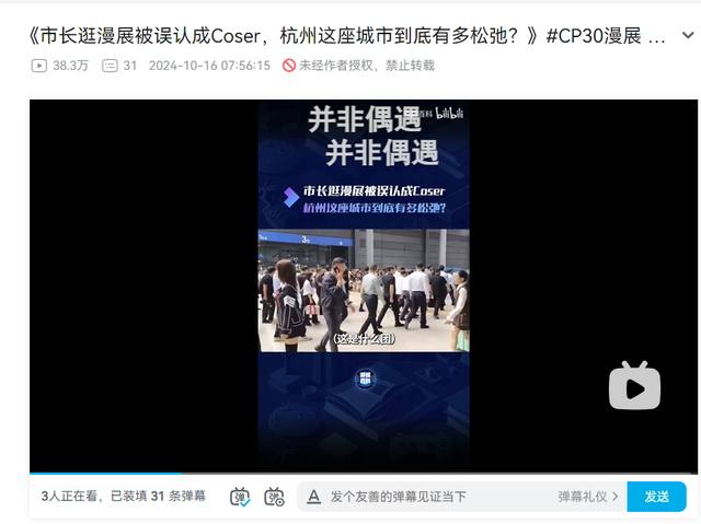 “杭州市长巡视 CP30 漫展,却被误认为整活 Coser”的故事,开始在各大群聊、社交平台疯狂转发。
