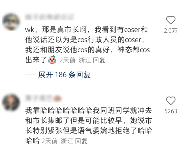 至此,全世界都知道了一件事:杭州市长,在无意识参加的“市长 Cos 比赛”中,荣获第一名。