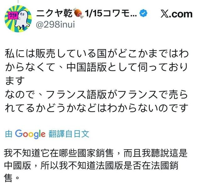 她还补了一句:法文版是否真的在法国上架,我其实也不知道。