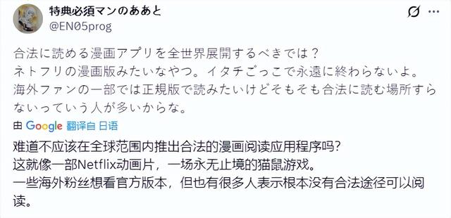有日本网友表示,如果不解决海外粉丝合法看漫画的途径,那这就是一场永无止境的猫鼠游戏。