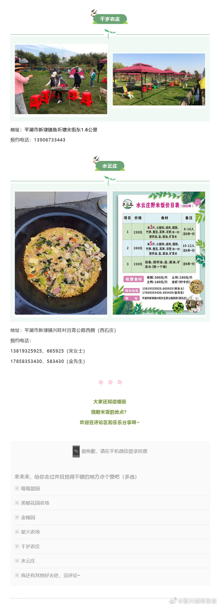 随着天气转暖,出门踏青+野炊是个不错的选择。春日里的固定节目,野米饭也是时候安排上了!给大家整理了一份平湖野米饭地图,平湖有哪些烧野米饭的网红点,一起去看看!乐享平湖