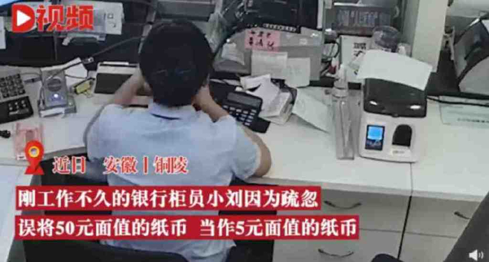 近日,安徽铜陵。刚工作不久的银行柜员小刘因疏忽,误将50元看成5元,本应给客户兑换的2000元变成了20000元,多给了18000元。接到报警后,民警联系上了客户王先生并向其说明情况,王先生表示自己已许久未使用现金,再加上忙于事务,当时也没有意识到。随后,王先生便来到派出所,将多收的钱款交还给了小刘。
