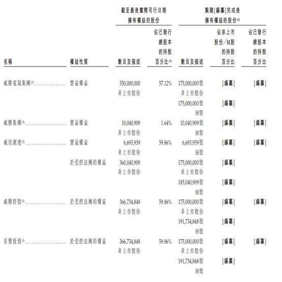 截至最后实际可行日期,威胜电气集团、威胜集团及威佳创建分别持有公司已发行总股本约57.12%、1.64%及1.09%。威胜电气集团及威胜集团由威佳创建全资拥有,而威佳创建则由威胜控股全资拥有。威胜控股由星宝投资拥有54.12%权益,而该公司则由吉为先生全资拥有。