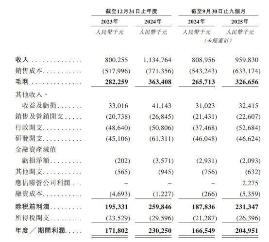 2023年度、2024年度、2024年及2025年截至9月30日止九个月,浙江荣泰年度╱期间利润分别约为1.72亿元、2.30亿元、1.67亿元、2.05亿元人民币。