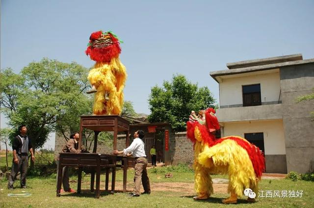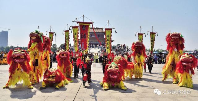丰城岳家狮俗称“打狮子”,其风格集百家之长兼文韬武略。岳家狮表演脱胎于汉族民间的南狮、北狮,融岳家拳威、雄、险及字门拳柔、刚、搏为一体,是广泛流传于江西丰城及周边地区的民间传统舞狮竞技活动。