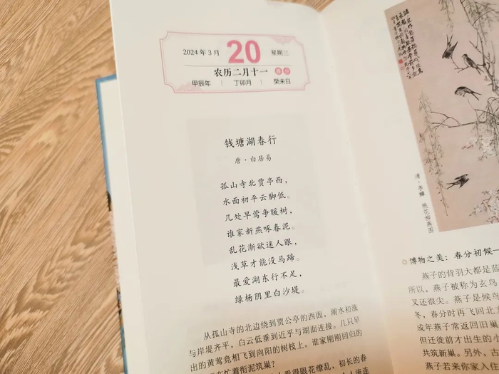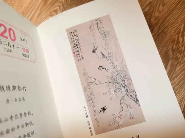 这本日历,把来年的每一天,收藏到应时风物里,用传统古诗词、传世古画、博物百科知识的方式,阐释这些风物,让我们深觉:每日都有美好在发生。