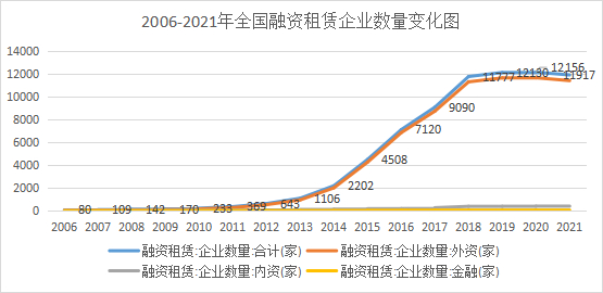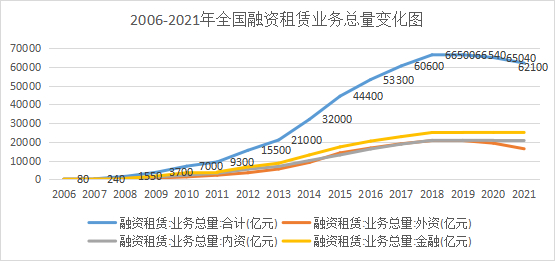 图1-1 2006-2021年全国融资租赁企业数量图(2)业务总量