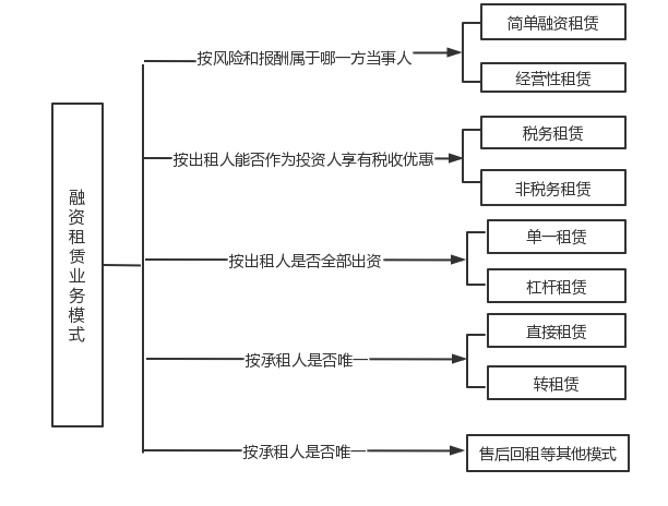 融资租赁业作为一种新型的金融产业,可按不同标准细分为多种不同的业务模式。随着该产业的发展,公司的业务模式也在增多,从最基础的直接融资租赁,